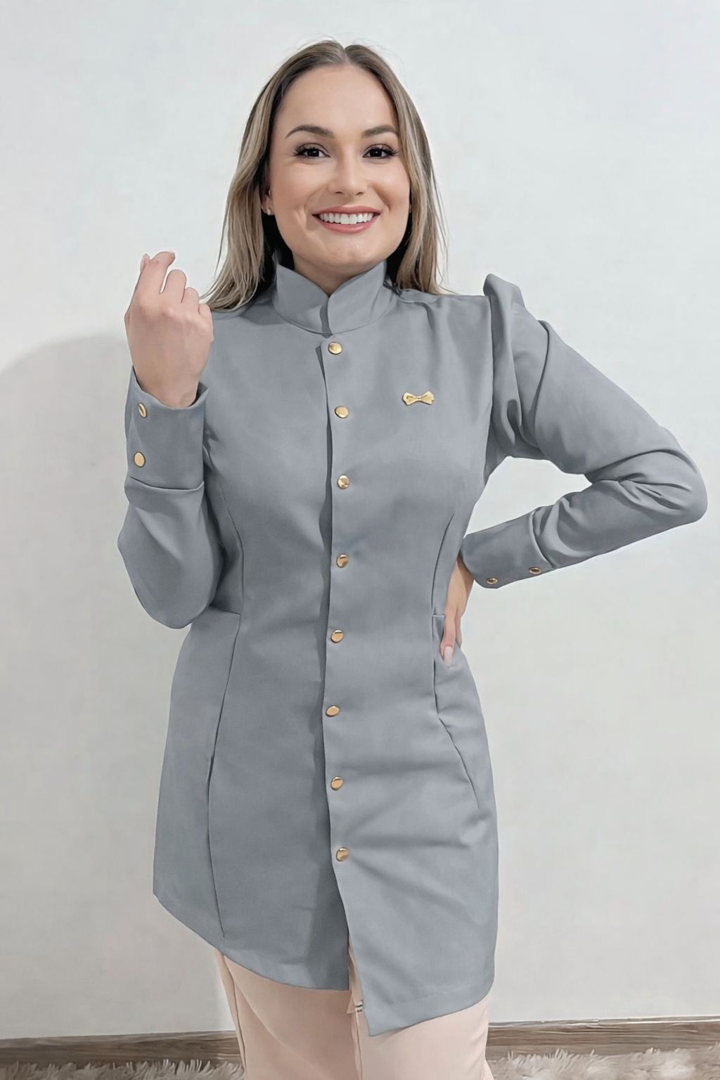JALECO Feminino Alyne é um modelo de jaleco Jovial e Elegante, de modelagem slim e caimento perfeito, traz um visual moderno para seu look do dia-a-dia.