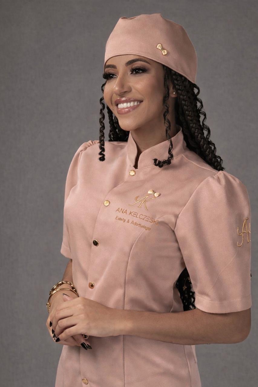 JALECO Feminino Alyne é um modelo de jaleco Jovial e Elegante, de modelagem slim e caimento perfeito, traz um visual moderno para seu look do dia-a-dia.